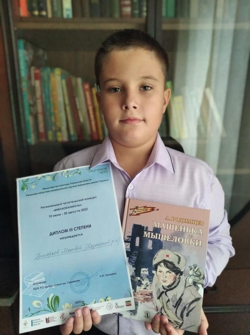 По итогам литературных испытаний ученик 4 класса, читатель Мурминской библиотеки получил дипломом третьей степени и памятный приз. Дипломом финалиста и поощрительным призом наградили Анну Савину, читательницу Хиринской сельской библиотеки, ученицу 6 класса.