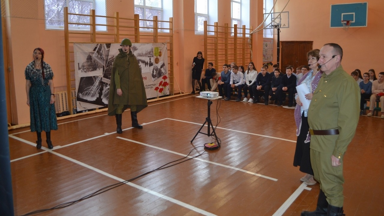 Театрализованное представление сопровождалось музыкой, показом фотографий, воспоминаниями жителей блокадного Ленинграда. Школьникам рассказали о том, что дети и подростки в заблокированном врагом городе терпели вместе со всеми голод, холод и лишения, вставали к станкам, заменяя ушедших на фронт взрослых, тушили пожары, разбирали завалы, расчищали улицы и трамвайные пути.