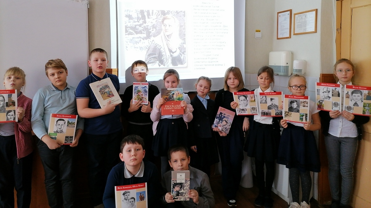 Благодаря мультимедийной презентации школьники побывали на виртуальной экскурсии по памятникам, которые увековечивают подвиг юных героев-атифашистов, и увидели, какие книги им посвящены.
