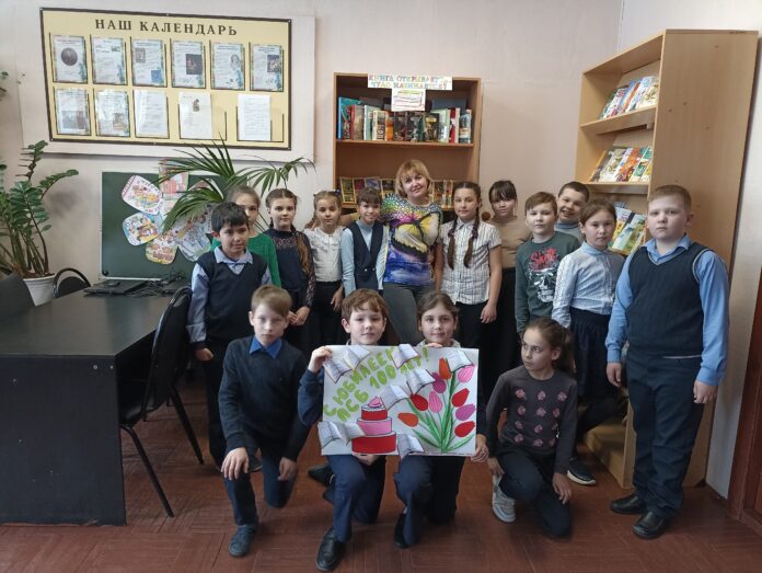 Учениками 3-го класса рассказали о том, что библиотека открылась в марте 1923 года. За 100 лет она стала настоящим информационным, образовательным, культурно-просветительским и досуговым центром, одним из любимых мест для многих жителей Полян.