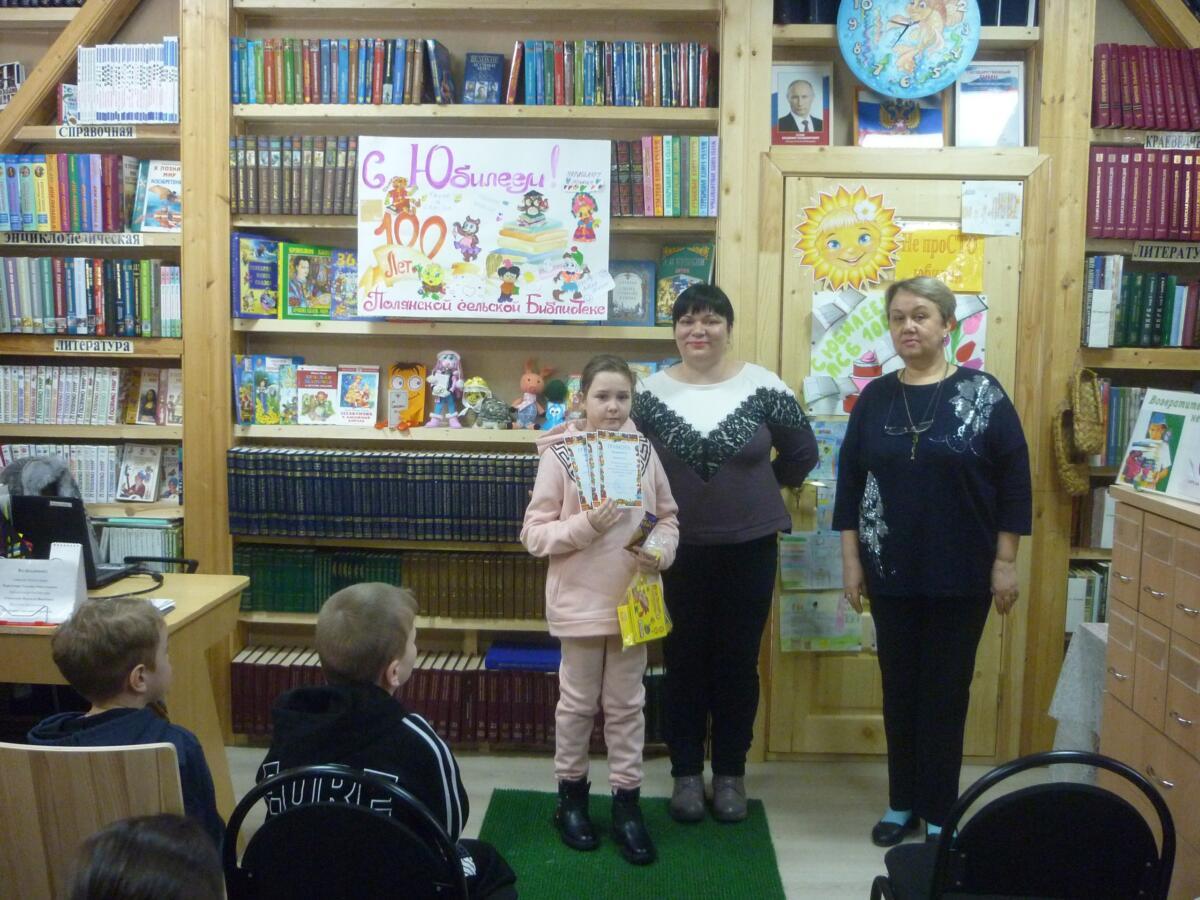 21 марта в Полянской библиотеке наградили участников конкурса поздравлений «Не проСТО юбилей», посвященного 100-летию библиотеки и приуроченного к неделе детской книги.