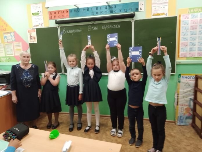 В этот день к первоклассникам Новоселковской школы пришла в гости методист Дядьковского Дома культуры Татьяна Романова, чтобы рассказать ребятам об удивительных животных – черепахах. Оказывается, они появились на нашей планете больше 220 миллионов лет назад и пережили даже динозавров!
