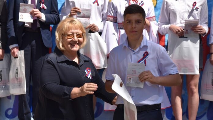 Глава администрации Клепиковского района Денис Ефанов поздравил горожан и пожелал всем крепкого здоровья и мирного неба над головой. Денис Викторович по традиции в этот день вручил паспорта самым активным мальчишкам и девчонкам. Среди них Анастасия Семёнова, Дмитрий Старков, Яна Рунова и Даниил Мараховский.