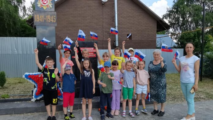 На спортивной площадке в Дядькове методист местного Дома культуры провела для детей познавательную встречу «Я люблю Россию». Участники отвечали на вопросы интерактивной и фольклорной викторин, играли в игры.