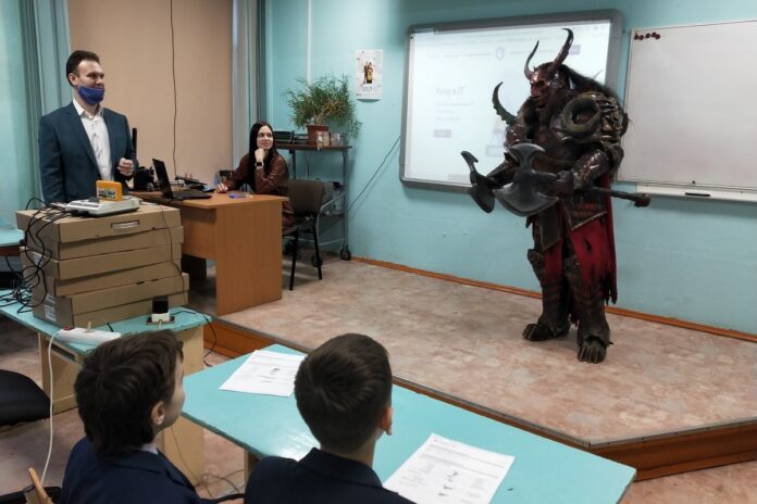 – Тему наши гости подняли более чем актуальную и интересную для детей, – отметила учитель информатики Подвязьевской школы Лилия Шемонаева. – В наше время нет, наверное, такого подростка, который не проводил бы как минимум пару часов в неделю за компьютерными играми. На этом уроке семиклассники узнали, что игры – это не только способ отдохнуть, но и прибыльная профессия. Из чего состоят программы, как они разрабатываются, где можно подробнее узнать об этом, какие конкурсы сейчас проводят для игроделов и кибер-спортсменов…. Я думаю, это было действительно интересно и познавательно. Да и костюмированное представление, надо признать, производит впечатление!