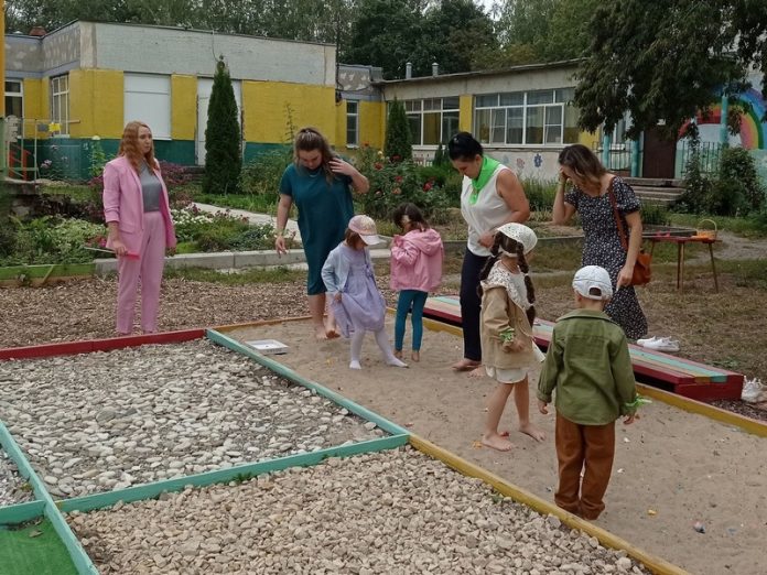 «Ребенку для нормального развития обязательно нужна так называемая сенсорная нагрузка, сенсорные впечатления, – отметила заведующая Рязанским детским садом Елена Буркина. – Наш сад предоставляет их в полной мере: здесь можно гулять, нюхать цветы, наблюдать за шмелями, валяться на сене, слушая, как воспитатель читает сказку, ходить босиком по «Тропе здоровья» – специальной зоне, отсыпанной камнями разной величины и фракции».