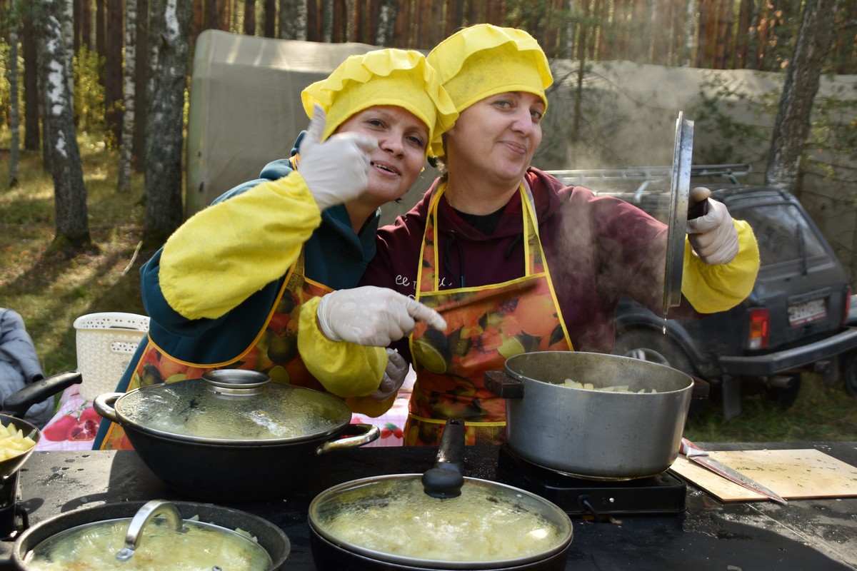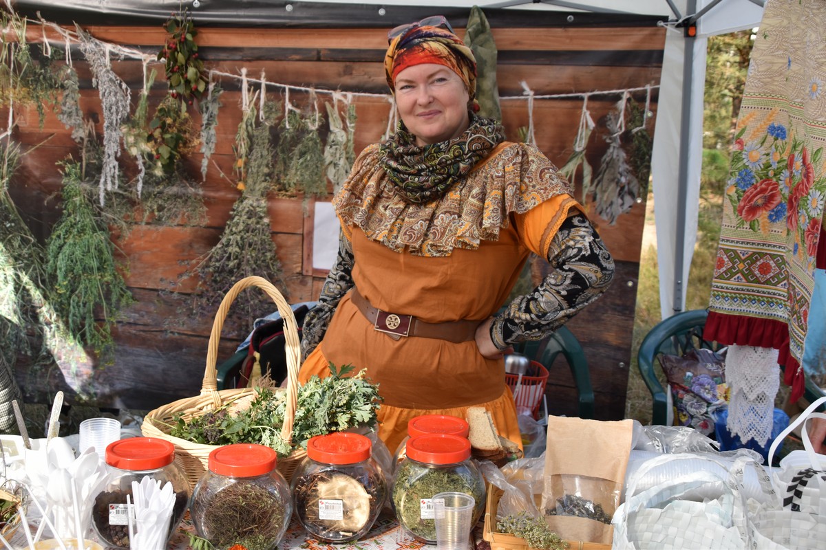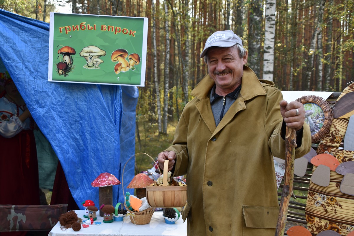 Для гостей работали интерактивные площадки. Можно было пройти мастер-класс по росписи пряничных грибов, сделать эффектные снимки в фотозонах, послушать частушечный баттл на грибную и лесную темы, попробовать травяные чаи, картошку с грибами и грибной суп и купить что-то из даров леса домой.
