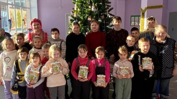 Семьями встречали старый Новый год и в Окском. Дети и родители участвовали в праздничной игровой программе и получали в награду наборы конфет.
