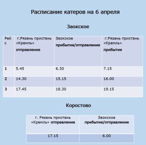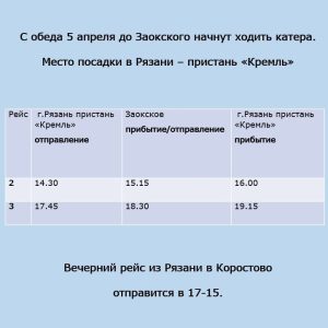 Первый рейс катер сделает днем 5 апреля – в 14.30 отправится от пристани у Рязанского Кремля.
