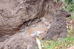 Рабочие затампонировали лоток, в котором лежит труба. Однако непосредственно к самому месту прорыва подступиться так и не удалось – по мнению специалистов, труба прохудилась на территории, которая находится в частном владении и располагается на улице Школьной. Хозяйка не разрешает проводить работы.