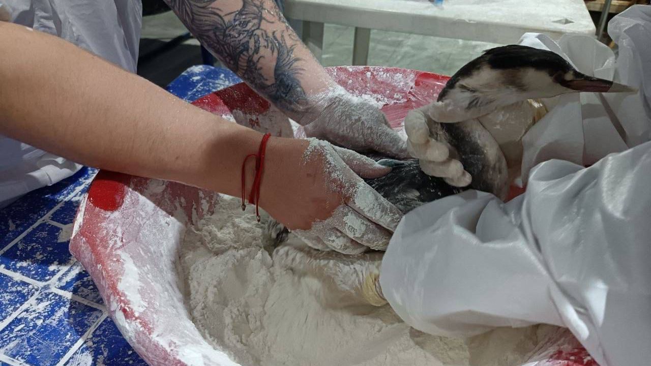 Поймать дикую птицу, которая перемазана в нефтепродуктах и не понимает, что люди хотят ей помочь, не так-то просто. Вернее, очень сложно. Волонтеры подкрадываются к пернатым, хватают за шеи или набрасывают на них коробки и, если бросок удался, подхватывают эти «ловушки» вместе с их «жертвами», которые защищаются крепкими клювами и когтистыми лапами. Коробки заклеивают, оставляя отверстия для вентиляции, и отвозят в центры по отмыванию птиц. Там работают не просто волонтеры, а квалифицированные специалисты – орнитологи, экологи. К сожалению, страдают в основном краснокнижные птицы. При виде людей они привычно ищут спасения в море, и приходится ждать, когда жертвы мазутных ловушек вновь выберутся на берег, или начинать охоту в холодной воде.