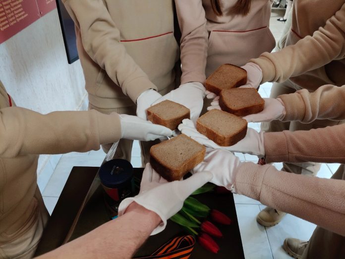 Добровольцы Искровской школы раздавали жителям поселка информационные листовки о блокаде Ленинграда и символ тех нелегких дней – кусочки хлеба весом в 125 граммов.