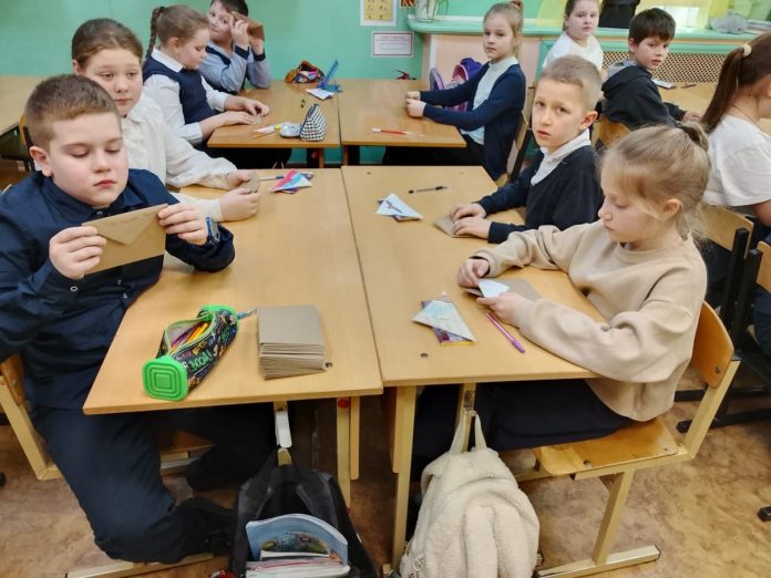 Ученики 3-х и 4-х классов написали бойцам письма с пожеланиями скорее вернуться домой с победой. Ребята рисовали рисунки и поздравительные открытки, чтобы вложить их в каждую посылку.