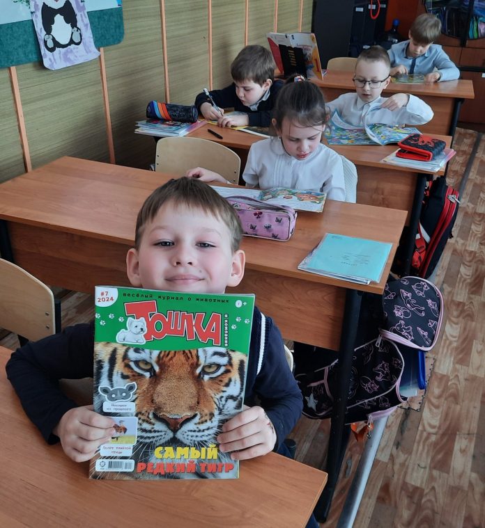 Библиотекарь познакомила ребят с детской периодикой, которую выписывает библиотека: «Мурзилка», «Тошка и компания», «Сказочный журнал», «Свирель». Школьники совершили настоящее путешествие по журнальным страницам – решали головоломки и ребусы, отгадывали загадки, читали стихи и комиксы, читали вслух любопытные факты о природе и животных. Самые интересные журналы ребята смогли взять с собой, чтобы внимательно изучить их дома.