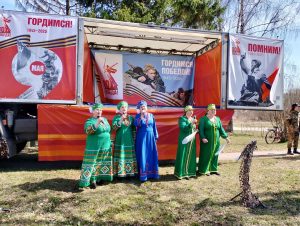 В рамках выезда продолжается районная акция «Мой герой»: любой желающий может написать на специальной открытке историю своего родственника, участника Великой Отечественной войны.