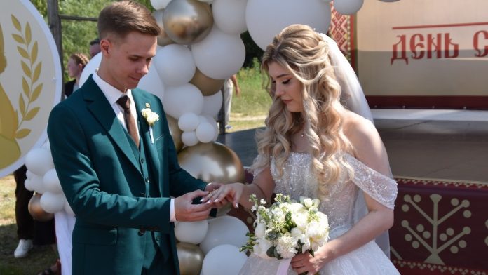 8 июля в селе Ласково отметили День семьи, любви и верности. Гвоздем программы стало бракосочетание – Егор Беляев и Оксана (уже Беляева, а еще утром Гусева) стали семьей и поклялись быть друг другу опорой на всю жизнь.