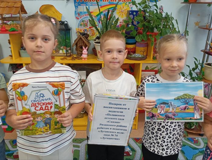 Полянскому детскому саду «Сказка» выпал жребий отправить посылку в Луганск, в ясли-сад № 74 с красивым названием «Лугацветик». В качестве подарка коллектив выбрал книгу рязанской детской писательницы Ирины Иванниковой «До свидания, детский сад!». Воспитатели даже встретились с автором, чтобы получить ее автограф для ребят из Луганска.
