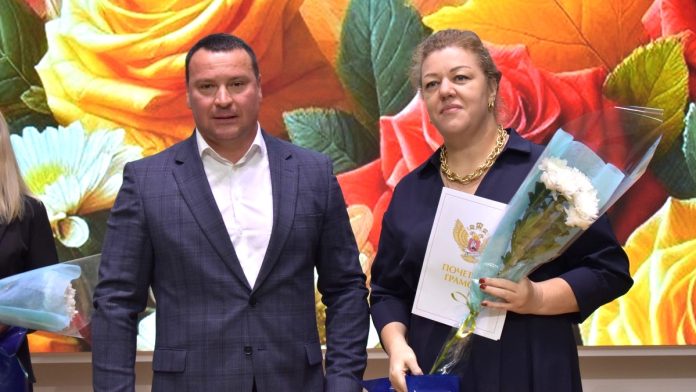Он вручил нагрудный знак «За верность профессии» Министерства просвещения Российской Федерации Светлане Гейнеман, учителю русского языка и литературы Заокской средней школы. Руководителей образовательных учреждений и педагогов школ района наградили Почетными грамотами Минпроса страны.