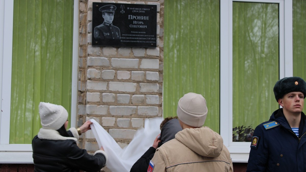 На траурном митинге присутствовали педагоги, друзья, родные героя. Право открыть мемориальную доску предоставили его матери Ирине Прониной и вдове Анастасии Прониной.