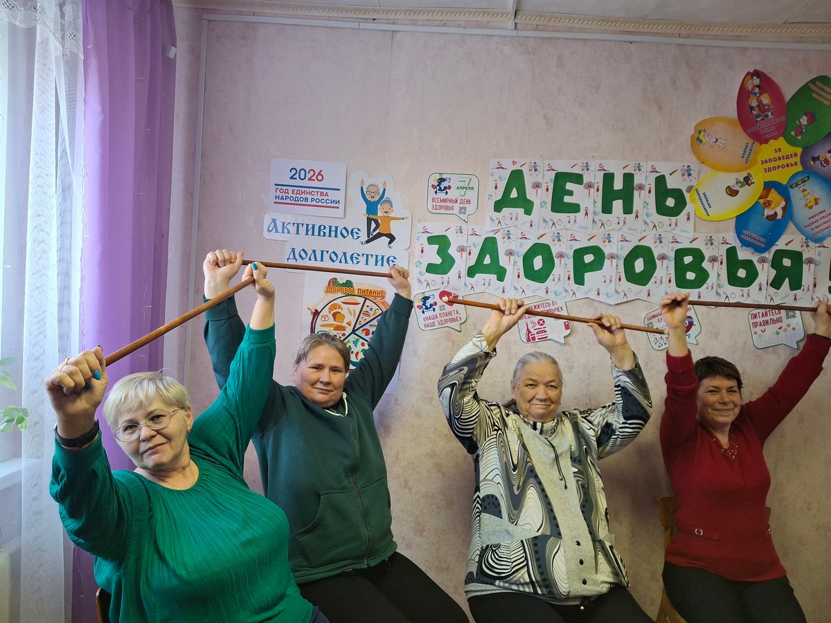 Затем все присутствующие сделали оздоровительную зарядку, доказывая, что активность не зависит от возраста. После физкультминутки угостились витаминным напитком из свежезамороженных ягод.