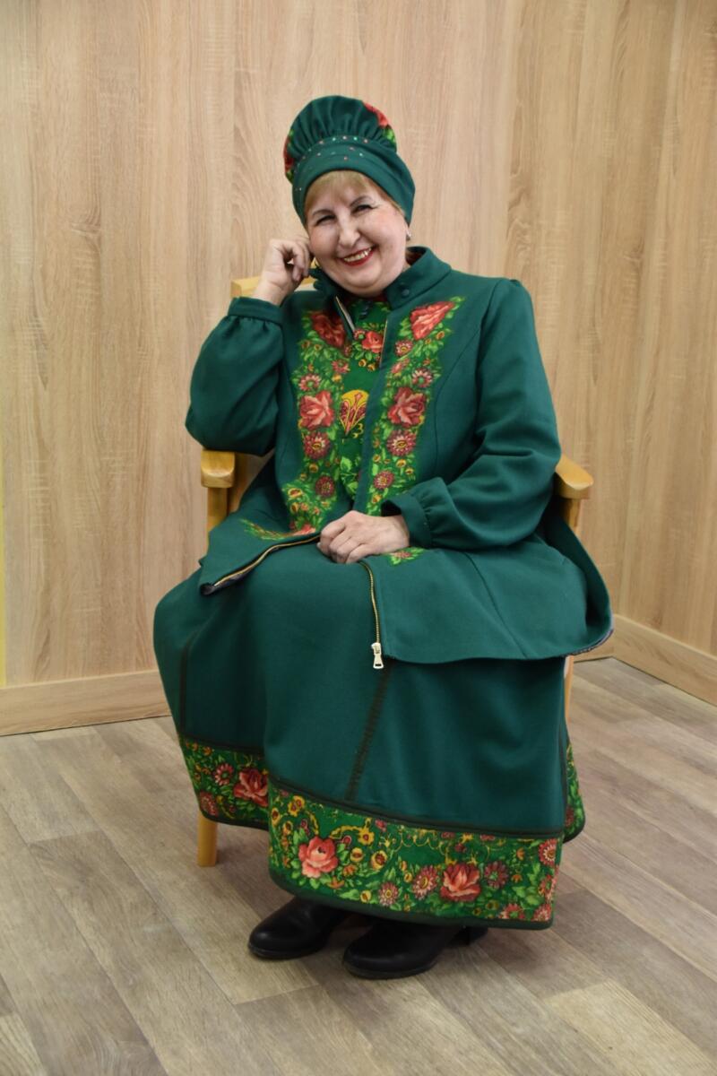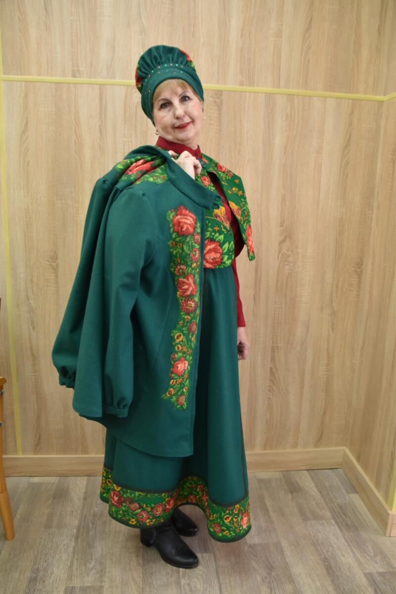 Юлия Кабанова (Подвязьевский Дом культуры) тоже рада продемонстрировать вещи, принесшие ей признание жюри. Она приехала на награждение в костюме, который и заслужил высокую оценку. Сделaн он в технике фильцевания – одной из разновидностей валяния.